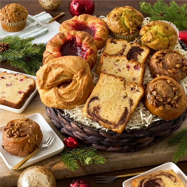 Make their Christmas morning grand with this tremendous gift! We’ve filled a circular gift tray basket with a variety of pastries. Inside, they’ll find everything needed for a family breakfast, including tea bread, croissants, muffins, and Danish. Send them this incredible yet simple breakfast they’ll never forget!